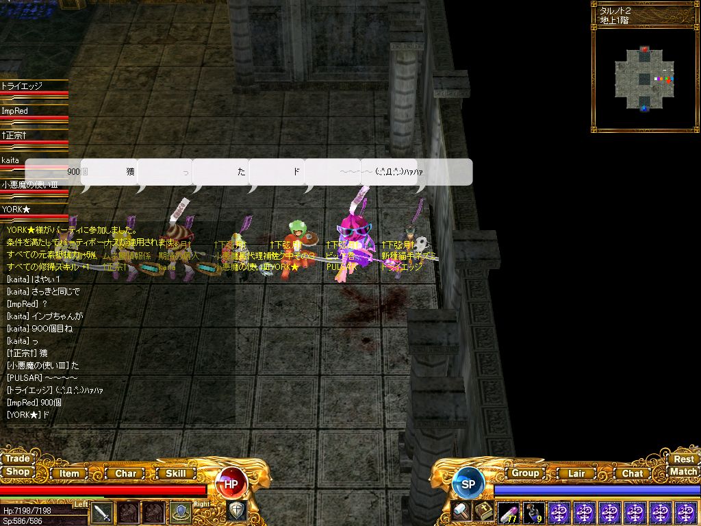 5N防具スクロールが出るとかで噂になってる ヘイラッグハイランドに行って来ましたヾ|*・∀・|ノ 24地域以降の場所はモンスが強すぎな為DNが必須みたいです。(゚うェ´。)゚。 ギルメンのカプたんとうまみつさんと行こうとしたのだけど FTやレンのいわゆる壁越えの速度がないとモンスが固定できないから難しいみたいで フレのジミーさんを誘って行って来た((((((((((っ`・ω・)っ このトルチャドというモンスが出すらしいですが・・・ 攻撃が当たらん当たらん・・・ 一匹倒すのに60秒~80秒かかってしまう(´∩ω∩`) 白い袋を落とすが、中身は全ステエディ・・・Σ(*゚Д`;) 3枚全ステエディを拾い 4個目の白袋が落ちた・・・ ドキドキしながら拾ってみると (;゚ー゚)! デタ―――ヽ(゚∀゚)ノ―――!!!!! まじで出たwww これで5N狩りを終了して村へ帰還ヾ(*`ω´*)ノ しかし最近5Nが増えて確実に相場が下がっている・・・ この時の5Nの値段が350M~400Mぐらいで まだ今月いっぱいまでドロップ2倍が続くから もっと5Nが出たらまだ安くなるんじゃないかと考えて 早く売れるように340Mでシハのど真ん中で売りさばいた(〃―`ω´―)b 全ステも売れて一人92Mになりましたヽ(*´∀`)ノ これは是非ともまた行きたいですな(●´エ`●)ッポ 話しは変わって新しいリンク先が追加されましたヾ|*・∀・|ノ Aliveさんのブログ “記憶を記録” です|ω・´ *)ノこれからもヨロチク! ~今日のSS~ ルディでGM発見(;゚Д゚)